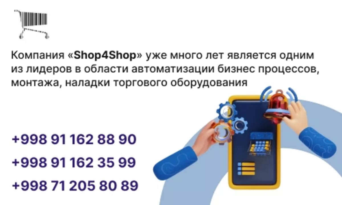 Кто мы? Компания «Shop4Shop» уже много лет является одним из лидеров в области автоматизации бизнес процессов, монтажа, наладки торгового оборудования и систем безопасности. Наши клиенты:  магазины, кафе, рестораны. Корпоративные заказчики: банки и промышленные предприятия, государственные учреждения, сотовые операторы, а также предприятия малого и среднего бизнеса. Многих клиентов и проекты компания привлекает по итогам тендеров, что свидетельствует о высоком техническом уровне и экономической эффективности предлагаемых нами решений. Наши возможности:  Быстрая доставка  Низкие цены  Широкий ассортимент  Отличное обслуживание  Профессиональные менеджеры  Гарантия на все товары  Надежные поставщики  Сезонные скидки  Программа лояльности Мы всегда рады общению с нашими клиентами. Если у вас есть какие-либо пожелания, предложения, замечания, касающиеся работы нашей компании - пишите нам, и мы с благодарностью примем ваше мнение во внимание. Наша команда: В штате компании работают опытные профессионалы. Благодаря этому мы гарантируем: высококвалифицированный технический уровень; экономическую эффективность предлагаемых решений, полную надежность в долгосрочных взаимоотношениях с нашими клиентами и партнерами; Мы постоянно смотрим вперед, в будущее, совершенствуя сервисы и запуская на рынок передовые услуги.